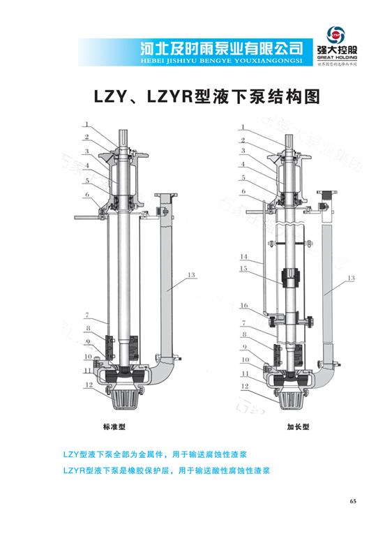LZY、LZYR型液下渣漿泵結構圖-河北及時雨泵業(yè)有限公司